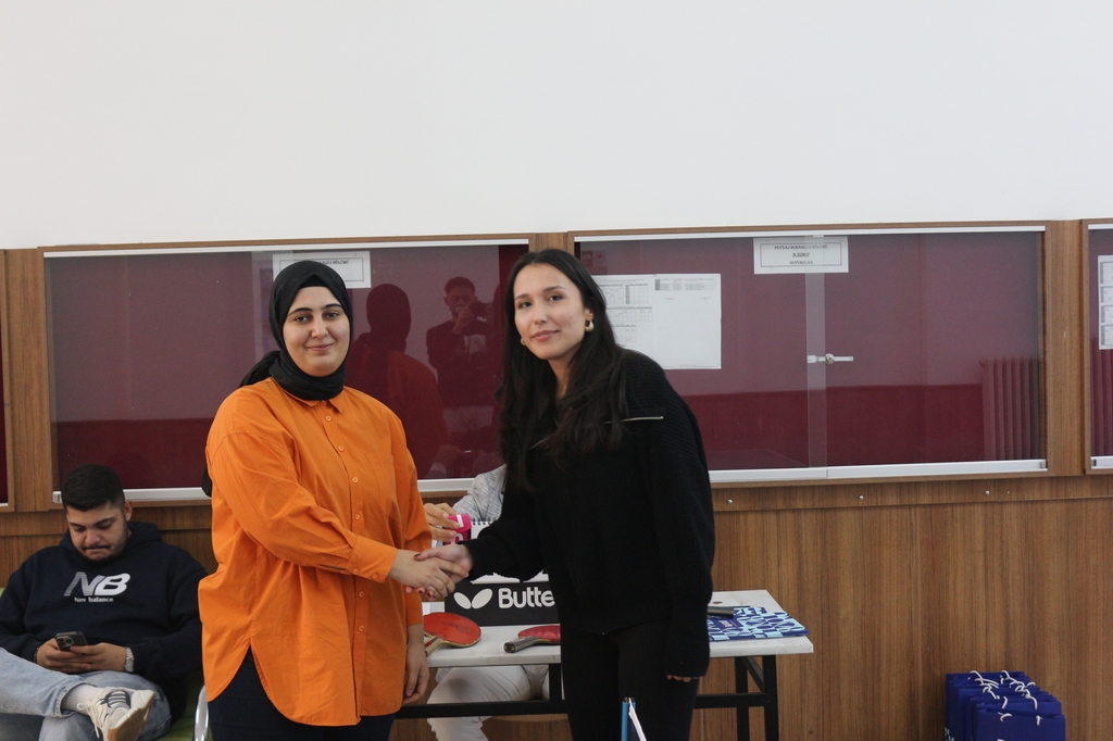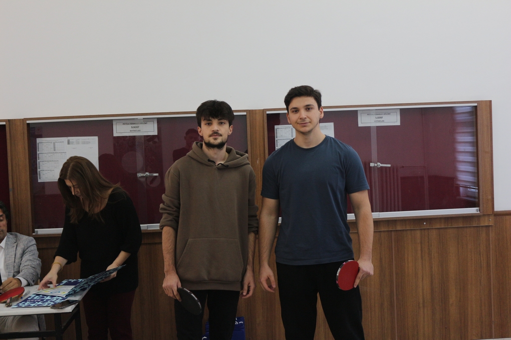 Fakültemizde düzenlenen 1. Orman Fakültesi Öğrencileri Arası Masa Tenisi Turnuvasında Orman Endüstri Mühendisliği Bölümü öğrencilerimiz hem erkekler hem de kızlar kategorisinde önemli dereceler elde ederek büyük bir başarıya imza attı. Erkekler kategorisinde Batuhan Tatar üstün performansıyla ikincilik elde ederken, kızlar kategorisinde ilk üç sıranın tamamını bölümümüz öğrencileri kazanmıştır: Münise İrem Taş birinci, Melek Şafak ikinci ve Edagül Engin üçüncü olmuştur. Her iki kategoride de öğrencilerimizin göstermiş olduğu mücadele, sportmenlik ve başarı fakültemiz adına gurur verici olmuştur.